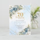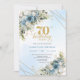 Charming dusty blue florals gold frame 70th bday invitation