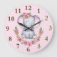 Charming Elephant Pink Floral Animal Print Large Clock