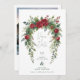 The garland of roses and leaves, with its rich burgundy and green tones, frames the front of the card, adding a sophisticated and striking touch. Its design stands out for its beauty and originality, ideal for an unforgettable wedding.