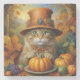 Charming festive Thanksgiving Cat in Disguise Stone Coaster