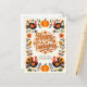 Send a little piece of art straight to the mailbox with this customisable Thanksgiving postcard. The front features a folk art-inspired border of charming turkeys and plump pumpkins, all dancing amongst a cascade of autumn leaves. The centerpiece, "Happy Thanksgiving," is rendered in a warm, retro-style font that feels as cosy as a favourite fall sweater. The back provides a generous space for your personalised message and address, making it a perfect way to share gratitude with clients, family, or friends.