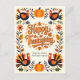 Charming Folk Art Turkey & Pumpkin Thanksgiving Holiday Postcard
