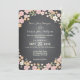 Lovely flowers in soft pink, apricot and blush with berries and blooms in ivory set against a trendy black chalkboard background frames your wedding invitation in charming style. Perfect for a spring or summer wedding or when a garden or outdoor theme is part of your special day. Whimsical mix of typography adds fun and flair. Coordinating products in this suite include response card, reception card, postage, place cards, table number cards, address labels and favour stickers - everything you need for a charming and complete wedding ensemble.