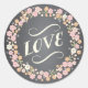This lovely flower wreath design in soft pink, apricot and ivory encircles charming 'Love' typography design on this wedding favour sticker set on a popular black chalkboard background. Elegant yet casual, it's a perfect accessory for any Spring or garden wedding; use as seals on envelopes, turn into cupcake toppers or food picks, or decorate wedding favours.