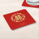 Charming Glitter Effect Floral Chinese Double Happiness Symbol Elegant Square Paper Coaster Design.