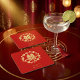 Charming Glitter Floral Chinese Double Happiness Square Paper Coaster