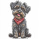 Adorable cartoon-style drawing of a small, happy dog sporting a red bandanna. Perfect depiction of a cheerful pet full of character, inviting smiles and joy with its expressive and playful appearance.