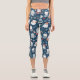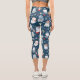 Charming Kawaii Christmas Snowmen in Navy Blue Capri Leggings