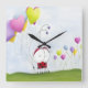 Charming Ladybug with Colorful Heart Balloons Square Wall Clock