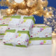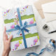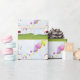 This adorable gift wrap is decorated with a charming ladybug holding a colourful bouquet of heart-shaped balloons as she stands among some colourful heart-shaped flowers. The balloons and flowers are coloured purple, pink, yellow, blue, and green. It is based on an original art piece by © One Artsy Momma.