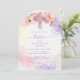 This invitation is a celebration of sparkle and tenderness, designed with a "lovely" and charming aesthetic to joyfully announce your baby's Christian baptism. The centerpiece is a beautifully crafted cross with a stunning lavender glitter effect, capturing the essence of light and celebration through the design. The cross is delicately adorned at the top with a semi-crown of flowers in shades of purple, pink, and lavender that seem to bloom from the piece. The background, with its soft and abstract watercolor effect, creates an artistic and organic canvas that highlights the elegance of the cross and the delicacy of the botanical art.
