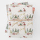 Charming Merry Christmas Trees Santa Sleigh Elves Wrapping Paper Sheet