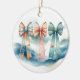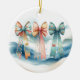 A delightful arrangement of three bows with trailing tails, each featuring a unique pattern of subtle designs in gentle tones, all enhanced with a hint of watercolor. This stylish, bow-themed ornament will add a touch of elegance to your tree.