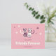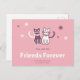 This postcard celebrates the joy of lifelong friendship with a charming design featuring two adorable cats, side by side, symbolising the unbreakable bond between friends. The playful pink background, coupled with the sweet message "Friends Forever," makes this postcard a delightful keepsake for any friendship. The additional space for a personalizable message on the back allows you to add a heartfelt note, making it even more special for your best friend.