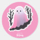 Charming Pink Ombre Ghost Halloween Stickers - Customisable Favour Tags | Add a delightful touch to your Halloween celebrations with these charming pink ombre ghost stickers! Featuring a cute ghost and whimsical branch accents, these stickers are perfect for sealing treat bags, personalising party favours, or decorating spooky invitations. The soft gradient of pink and purple adds a stylish, modern look, suitable for both kids' Halloween parties and more elegant events. Personalise each sticker with a name or message to make your Halloween festivities unforgettable. These fun, festive stickers are fully customisable!