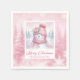 Charming Pink Snowman Kids Cozy Winter Scene Xmas Napkin