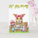 Send a message of love to your family member or friend with this Easter card design with bright colors and an image of a cute white rabbit with Easter eggs. The design can be personalized with a message for your beloved family member or friend! Don't think twice and get yours now.
