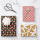 Charming pizza themed birthday party wrapping papers with pizza patterns and a printed red gingham pattern.