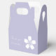 Give your guests, bridesmaids, groomsmen, or anyone else a special treat with these customisable favour boxes featuring a pastel lavender background with a delicate white cherry blossom on the front and back of the box. Both of these sides also feature some sample text that you can customise for your own wedding or event. Be sure to check out the other products in the Charming Sakura in Lavender set to create a truly coordinated look for your event.