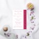 Bring touch of spring charm to your event with this wedding invitation featuring a bright raspberry pink border on the right side, decorated with a pattern of delicate cherry blossoms printed in real foil. The left side of the card has plenty of space for all of the details for your special event with some sample text in place that can be customised to fit your needs. A large bright pink sakura bloom finishes things off on the back to create a sweet final note. This invitation will match with any other Charming Sakura in Raspberry product so that you can easily make your event as coordinated as you desire.