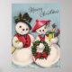Decorate your wall with a charming vintage snowmen poster for Christmastime.