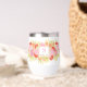 This elegant tumbler is designed to elevate your sipping experience. The tumbler showcases a delightful elegant coral orange, blush pink, pastel spring green and light red coloured flora watercolor bouquet art pattern design. With room to customise with name, monogram or initials of your choice. The intricate flowers and leaves create a whimsical and cheerful vibe. Whether you’re enjoying a chilled white wine or a cosy mulled red, this tumbler has you covered. Sip elegantly wherever you go. While perfect for wine, this tumbler also accommodates other beverages like tropical Pina Colada or other cocktails, juices, or even hot cocoa. It’s a versatile addition to your drinkware collection.
