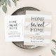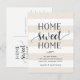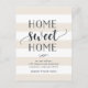 Charming and modern moving announcements let friends and family know about your new home sweet home! Design features a subtle striped background in cream beige and white, with "home sweet home" in soft black script and block typography. Use the template fields to add your custom intro, new address and names. Information repeats on the reverse side with space for recipient addressing.