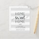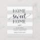 Charming and modern moving announcements let friends and family know about your new home sweet home! Design features a subtle striped background in pale grey and white, with "home sweet home" in soft black script and block typography. Use the template fields to add your custom intro, new address and names. Information repeats on the reverse side with space for recipient addressing.