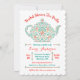 Modern lacy style Teapot Bridal Shower Invitation decorated with swirls, holly, poinsettia flowers, vines, pinecones, acorns and berries. Pretty matching pattern on the back. Very charming and perfect for a Christmas Themed Tea Party Shower. Original Illustration by pj_design. Merry Christmas!