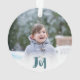 Charming Trendy Joy Blue Green Holiday Photo Ornament
