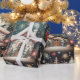Wrap your gifts with enchantment using this vintage-inspired Christmas wrapping paper featuring a cosy gingerbread-style cottage surrounded by a magical winter wonderland. A deep, starry blue background highlights intricate golden snowflakes, candy canes, festive poinsettias, glittering baubles, and decorated Christmas trees. The whimsical centerpiece cottage with its snowy roof and warm glow creates a heartwarming holiday scene, while scattered glitter accents add a luxurious touch. Perfect for creating memorable gifts that capture the nostalgic charm and sparkle of the holiday season. Thank you for visiting.