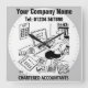 Chartered Accountant, Auditor, or Accountancy Services wall clock with your choice of company name and number. Includes faint clock face background.