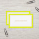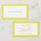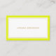 This elegant and feminine template business card features thick chartreuse and thin gold border. Place your name or business name on the front side of the card and info on the back side of this business card.