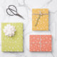 Make your holiday gifts a little more colorful with this fun holiday wrapping paper sheet set. It features a hand drawn snowflake pattern on a sheet of chartreuse, gold, and coral.