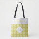 Chartreuse Grey Dots Trendy Initial Monogram Tote Bag