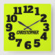 Chartreuse Neon Yellow-Green Big Numbers Square Wall Clock