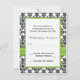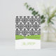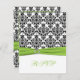 This black and white damask rsvp card with a lime green PRINTED ON ribbon and jewelled brooch matches the wedding invitation shown below. If you require any other matching items, or would like it in another colour combination, please email niteowlstudio@gmail.com with your request.