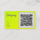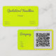 This business card template features a bright chartreuse yellow solid colour background, perfectly complemented by a QR code and hand-lettering style grey fonts. The use of Pacifico font and rounded corners adds a playful and creative touch to the design. Personalise both sides now by swapping the cover image for your own custom QR code. The card comes in packs of 100, providing great value and style.