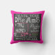 Chase Your Dreams Motivational chalkboard look pillow with various font and text styles of white on a black chalkboard look background. Text reads "Chase Your Dreams. Try Hard. Realise your potential and know...if you fail...you gave it your All"!