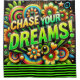 This motivational shower curtain says "Chase your dreams!" on it.