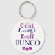 This is a fun Bunco inspired graphic design. Featured are the words: Chat, Laugh, Roll, Bunco. Also included are three bunco dice. Perfect birthday gift, hostess gift or a Bunco prize.