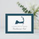 Map of Cape Cod in Navy Blue with Red heart over Chatham, Massachusetts. Perfect for your Wedding Thank You cards. Add two lines of text on the font or click on Customise it to add more wording on the inside or cover. For enquiries about custom design changes by the independant designer please email paula@labellarue.com BEFORE you customise or place an order.