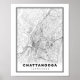 High-Resolution Map of Chattanooga, Tennessee, United States.