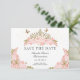 Elegant Blush Pink Floral Gold Tiara Quinceanera Save the Date