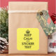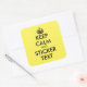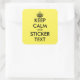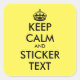Cheap yellow square custom Keep Calm stickers. Create your own keep calm and carry on meme. Personalise with text and colours. Modern typography with crown logo. Available in small and large. Change quantity to get the cheapest bulk price.