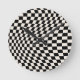 Check Black And Cream White Pattern Chequerboard Round Clock