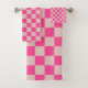 Check Coral Pink Chequered Pattern Chequerboard Bath Towel Set