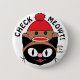CHECK MEOWT! Black Cartoon Cat w/ Sock Monkey Hat 6 Cm Round Badge