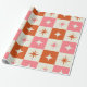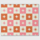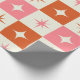 Checkered Mid Century Atomic Stars Pink Orange Wrapping Paper
