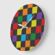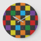 Checkered Pattern Trendy Rainbow LGBTQ Monogram Large Clock